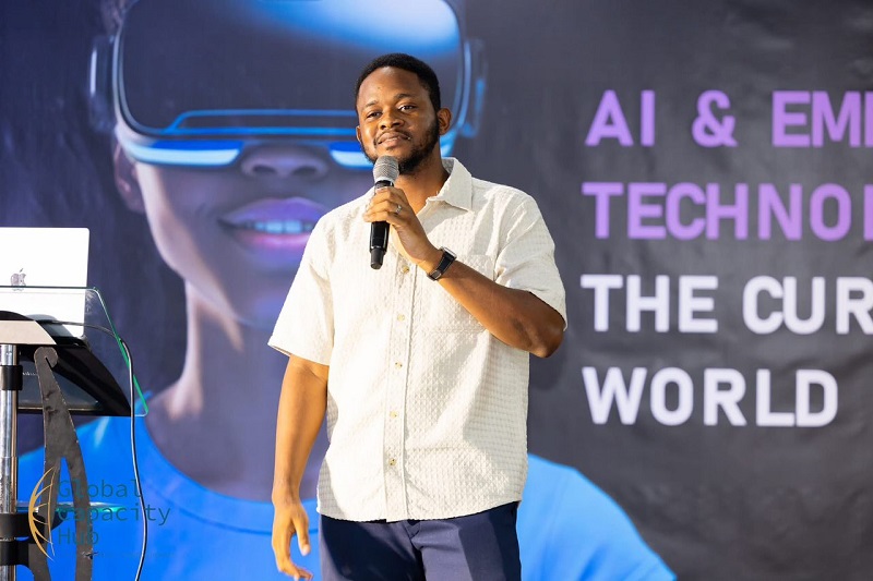 Mr. Yakuba’s presentation focused on the role of AI in addressing social challenges, with a special emphasis on mental health. He highlighted how AI can support emotional well-being through accessible, tech-driven solutions. As part of his talk, he introduced Whispa2Me, a mobile app designed to provide a safe space for users to anonymously share their feelings and receive support. The platform aims to reduce stigma and encourage open expression, demonstrating how AI can be harnessed for empathy and connection in today’s society.